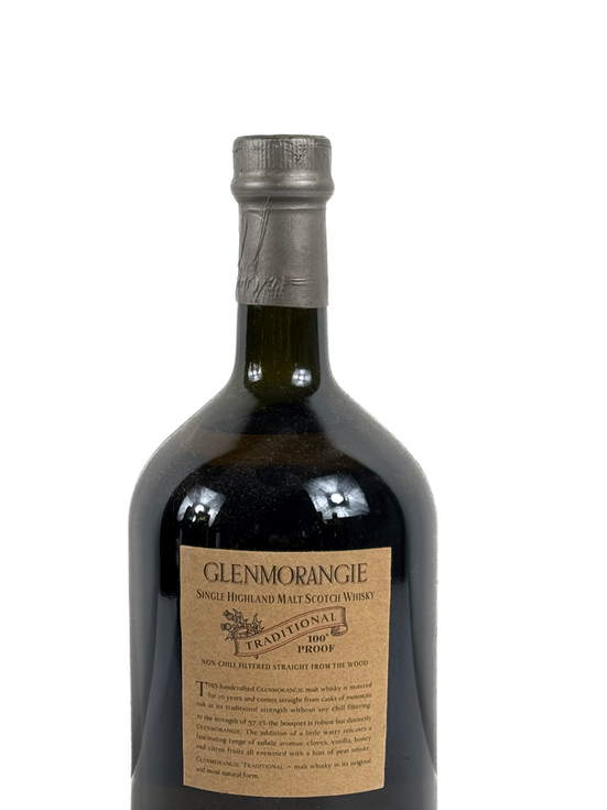 Glenmorangie 'Traditional' 100° Proof Single Highland Malt Scotch Whisky. This specific expression is a rare, discontinued release originally created for travel retail to honor the traditional, high-strength character of the distillery's spirit.