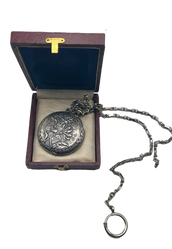 A vintage silver pocket watch, together with an elegant box to keep it in.