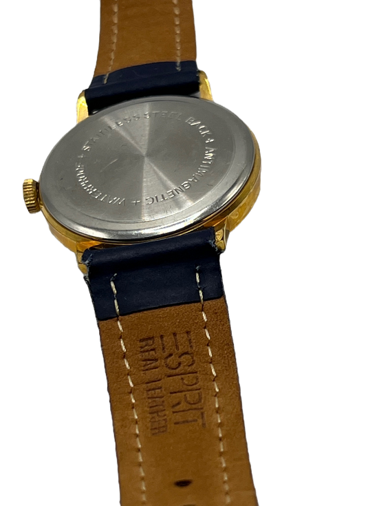 An authentic mechanical Kienzle Markant with dark blue leather straps. A true vintage watch made in Germany.
